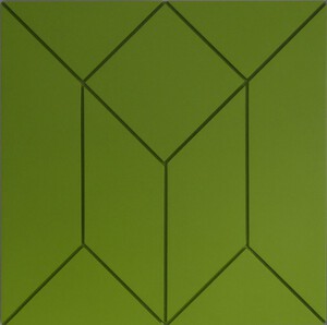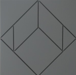 2020De vierkanten hebben diverse afmetingen, oplopend van 40, 50 en 60 cm. In totaal zijn er 40 gemaakt,. De gefreesde lijnen vormen een lijnenspel die in de meeste gevallen leidt tot een optische illusie. Sommige panelen kunnen zowel diagonaal als rechtstandig opgehangen worden. De objecten zijn afgewerkt met een aluminium lijst. Kleur: grijs, zijdeglans op waterbasis op 18 mm mdf. De serie is gemaakt in de jaren 2018 - 2020.