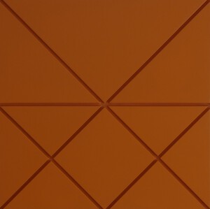 2020De lijnen zijn gefeesd. Kleur: Oranje, zijdeglans op waterbasis op 18 mm mdf. Afgewerkt met een aluminium lijst.